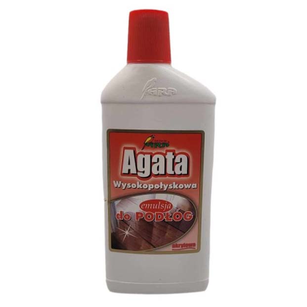 Agata Wysokopołyskowa Emulsja do Podłóg to wydajna i ekologiczna emulsja akrylowa o lakierowym połysku, która zapewnia ochronę i nadaje piękny wygląd różnym typom podłóg.