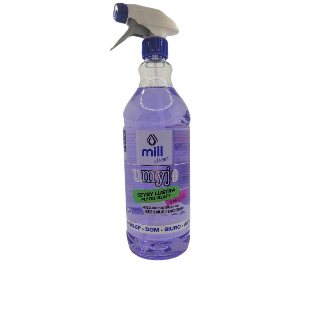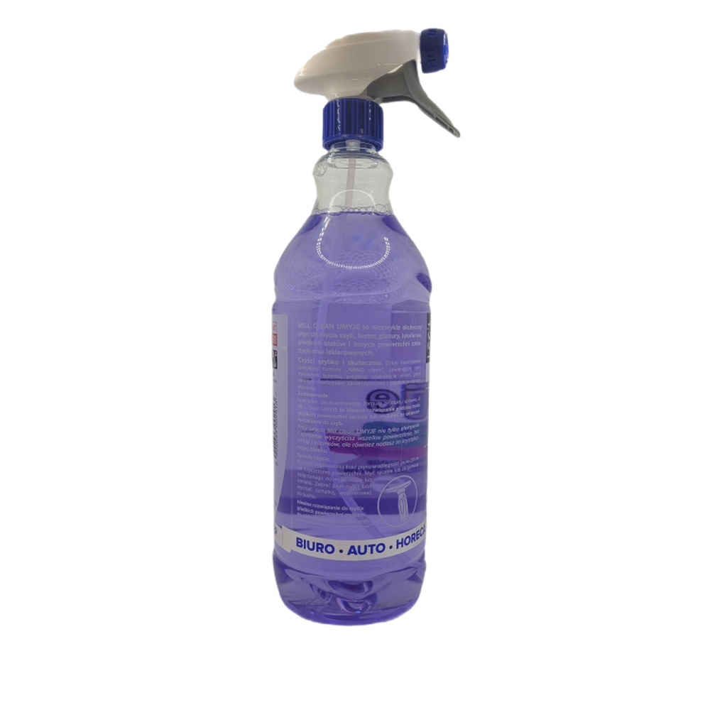Mill Clean Umyje to płyn do mycia szyb, luster, glazury i innych powierzchni szklanych. Jest to produkt skuteczny i wydajny, który nie pozostawia smug i zacieków. Płyn zawiera nanotechnologię, która zapobiega ponownemu osadzaniu się brudu i wody na szybach. Dzięki temu okna pozostają czyste i lśniące przez dłuższy czas.